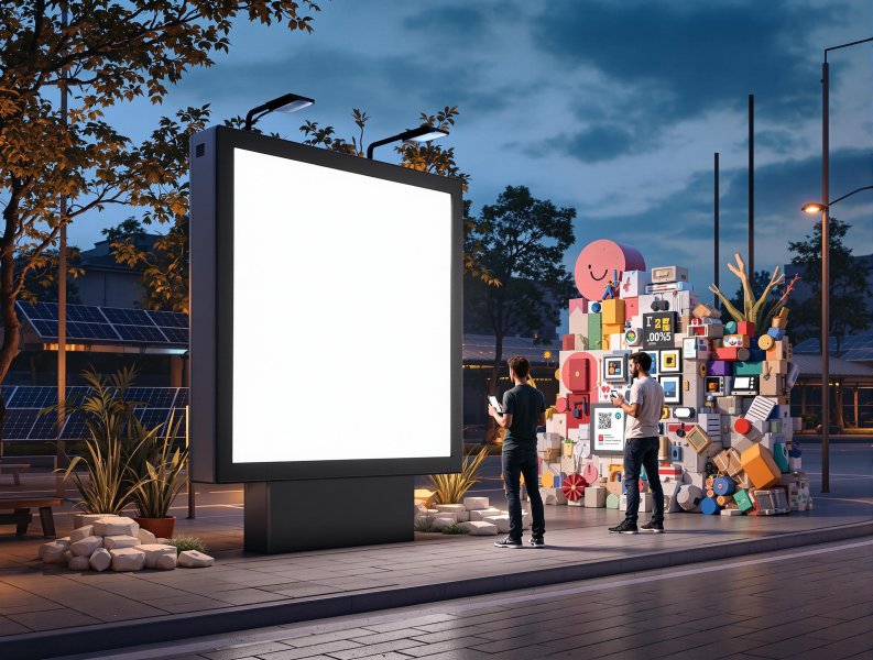 Presja konsumentów i regulacje rynkowe sprawiają, że outdoor marketing musi być odpowiedzialny. W 2026 roku neutralność klimatyczna przestanie być opcją, a stanie się koniecznością. Ten trend, określany jako Green OOH, przejawia się na wielu poziomach: od stosowania materiałów z recyklingu (lub nadających się do ponownego przetworzenia), przez inwestycje w ultraenergooszczędne oświetlenie LED, aż po całe konstrukcje zasilane energią słoneczną. Pokazanie odpowiedzialności ekologicznej staje się integralną częścią przekazu marki.