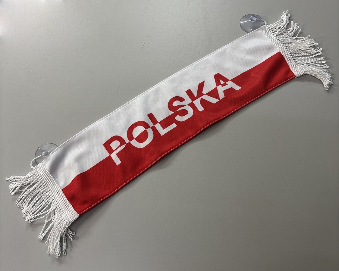 Ten wariant wyróżniają praktyczne przyssawki, które umożliwiają przymocowanie szalika do szyby. Możesz umieścić go na przykład w samochodzie, aby zaznaczyć swoje kibicowskie barwy także w drodze. To rozwiązanie wygodne i łatwe w montażu.